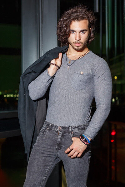 La noche era ya muy cerrada y empezaba a refrescar, por lo que el modelo se viste con un estilismo más abrigado y urbano a la vez que elegante.